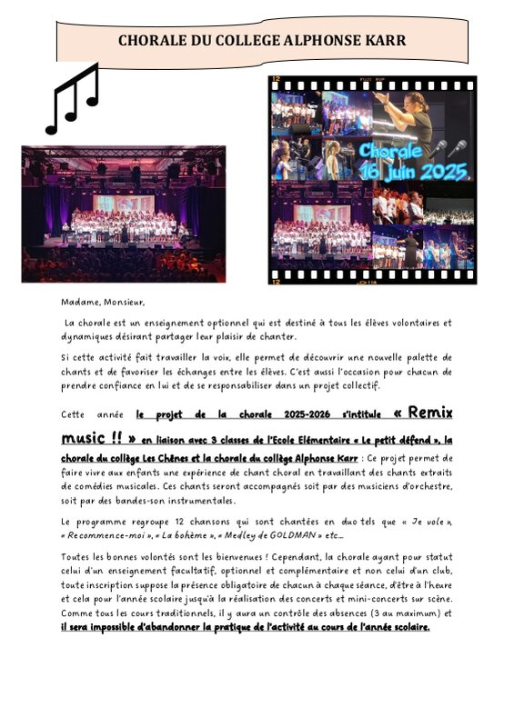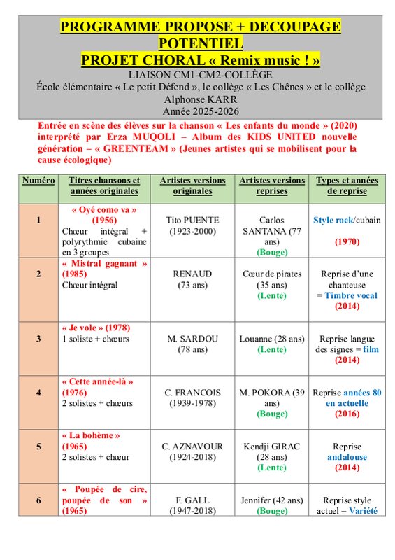 Projet CHORALE 2025-2026 : "REMIX MUSIQUE !!"