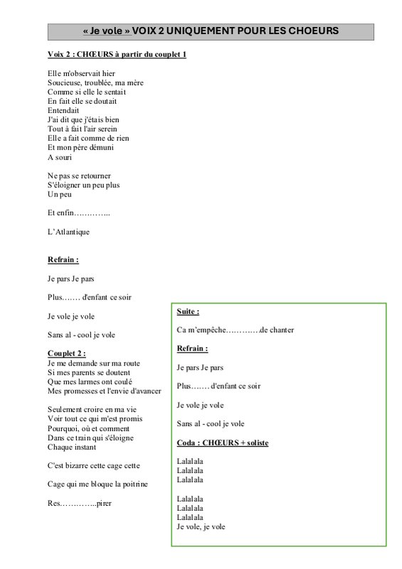 Paroles Voix 2 Choeurs Pdf Refaite