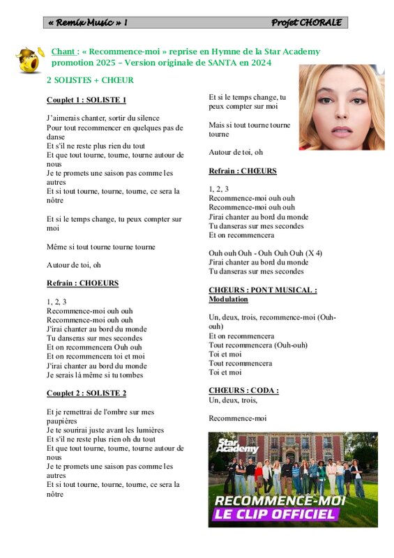 Projet CHORALE 2025-2026 : "REMIX MUSIQUE !!"
