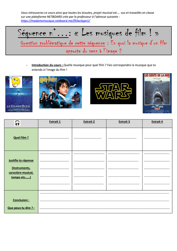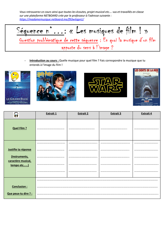 Question problématique de cette séquence : En quoi la musique d'un film apporte du sens à l'image ?