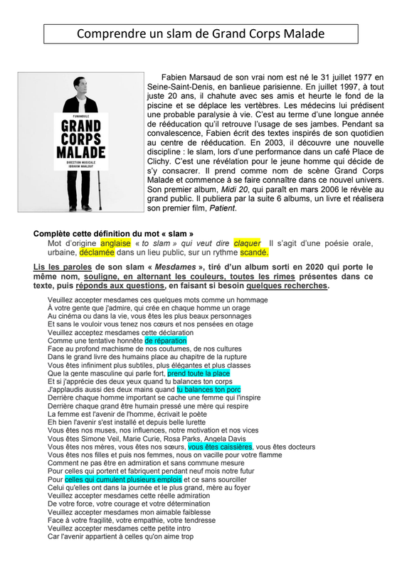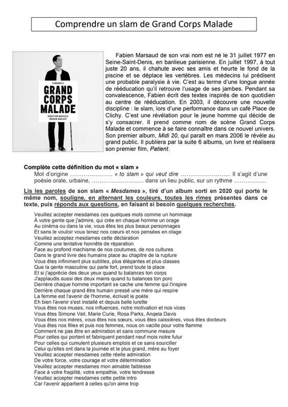 Corrigé Comprendre Un Slam De Grand Corps Malade Pdf