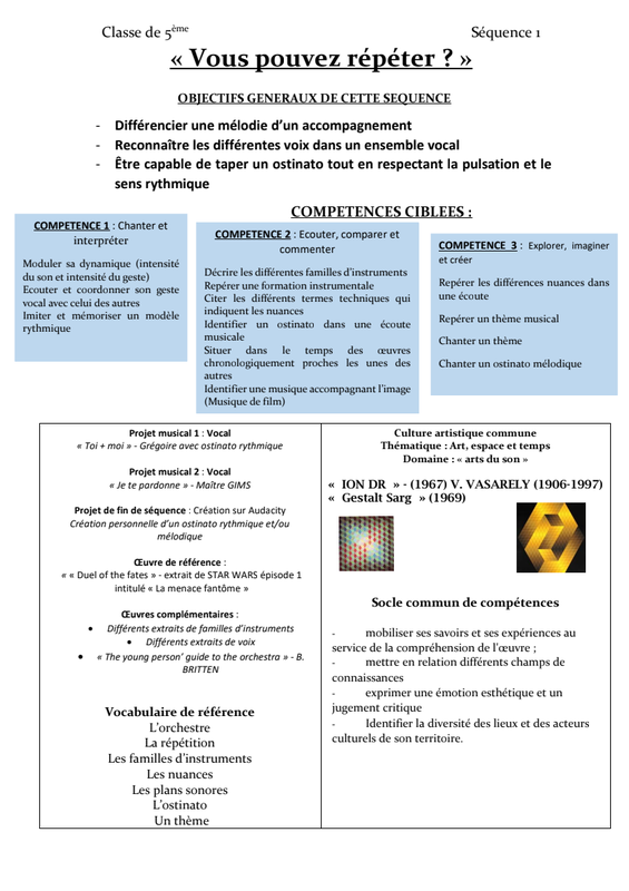 Question problématique de cette séquence : Comment répéter sans ennuyer ?