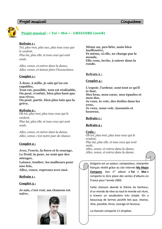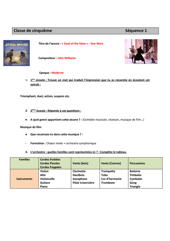 Fiche D'Ecoute 5Eme Pdf