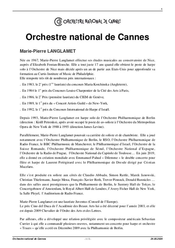 En 1928, l’italien Respighi emprunte des thèmes de compositeurs baroques et compose Gli Uccelli, Les Oiseaux, suite pour orchestre en cinq mouvements inspirés par les vocalises d’oiseaux.Dix ans plus tard, l’espagnol Rodrigo compose son célèbre Concierto d’Aranjuez, œuvre mettant également la nature à l’honneur à travers, comme le souligne le compositeur, « les fragrances des magnolias, le chant des oiseaux, et les ruissellements des fontaines ». Proposé dans sa transcription pour harpe et orchestre, il est interprété par Marie-Pierre Langlamet, chambriste et soliste de renom, membre du Berliner Philharmoniker.Inspirée d’un poème d’Emily Dickinson, How Slow the Wind de Takemitsu est une parenthèse paisible, évoquant le calme précédent ou suivant une catastrophe naturelle, tandis que Ravel nous plonge dans le merveilleux avec Ma mère l’Oye, écrit à partir des contes de fée de Charles Perrault où nature et enfance se rencontrent.